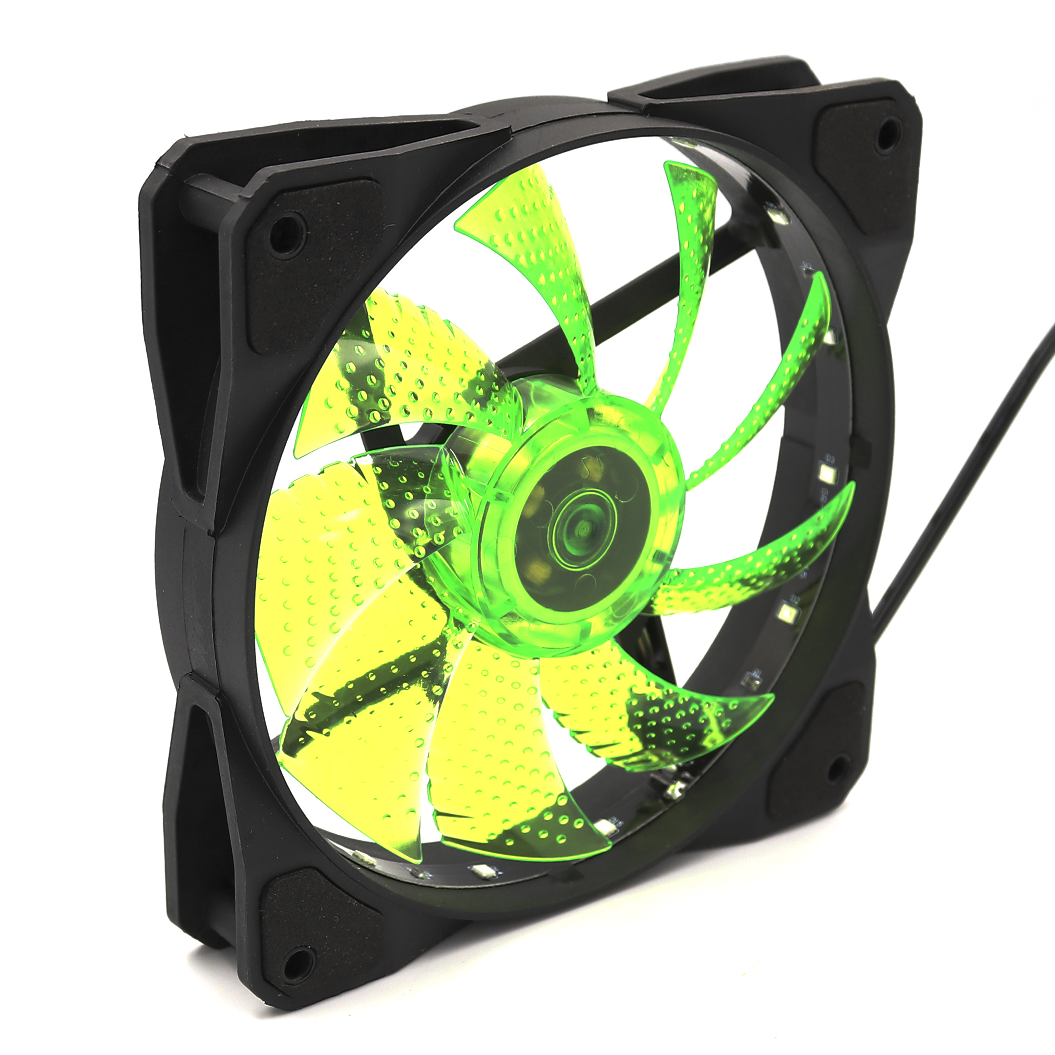 Вентилятор для охлаждения кейса 12 x 2.5 см 15LED 12V DC 3+4P зеленый